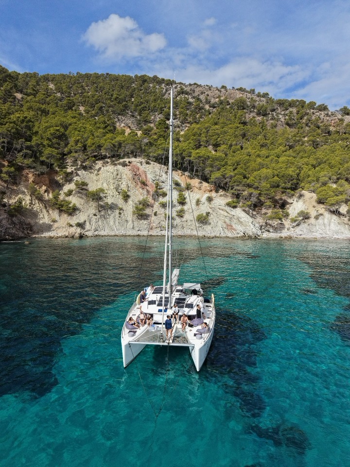 Book your catamaran excursion in Santa Ponsa now and enjoy a unique moment between sea, sun, and relaxation.